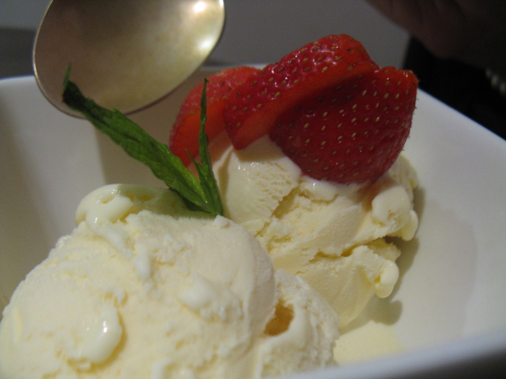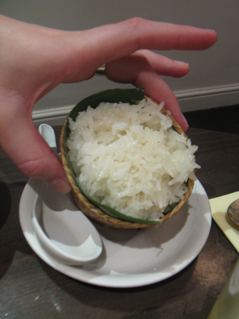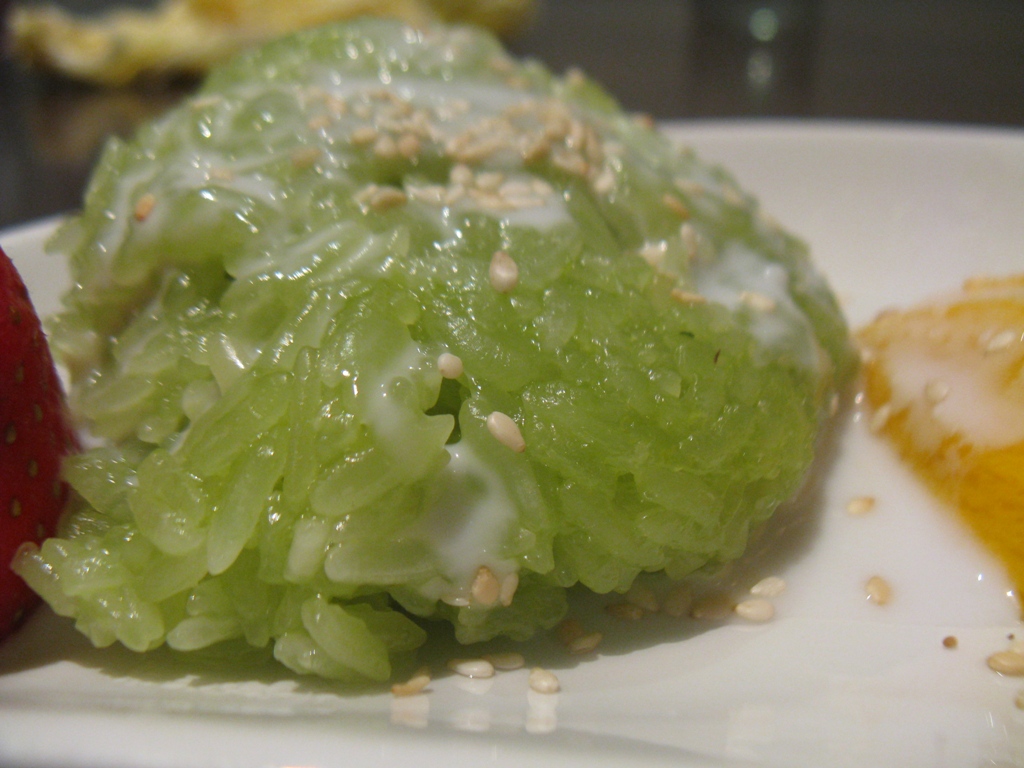 For dessert, I had the most unique thing I’ve had in while – green sticky rice with coconut juice, served with ripe mangoes and a strawberry. It was different, delicious and looked fabulous.