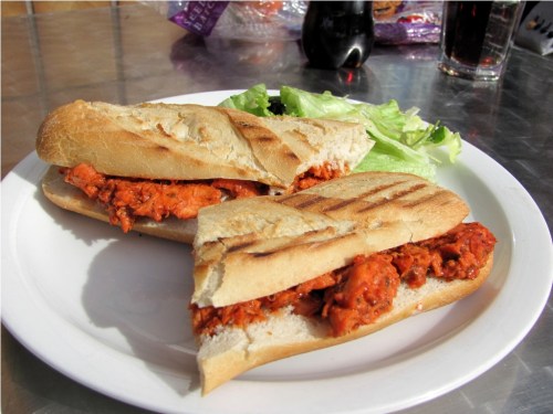 Falafel sandwich and a hot chocolate set me back £4.45. Their chilli con carne jacket potatoes was just £3.75. Again, outside seating is preferred in good weather. The food is filling, if not perfect.