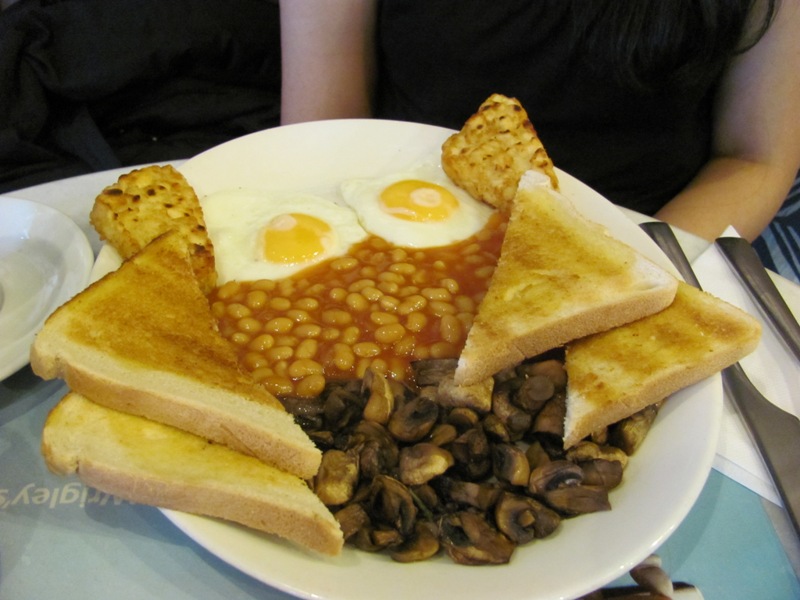 The vegetarian breakfast consisted of two slices of toast, two eggs, baked beans, mushrooms, two hash browns, grilled tomatoes (not in the picture because my friend doesn’t like tomatoes!) and a hot drink.