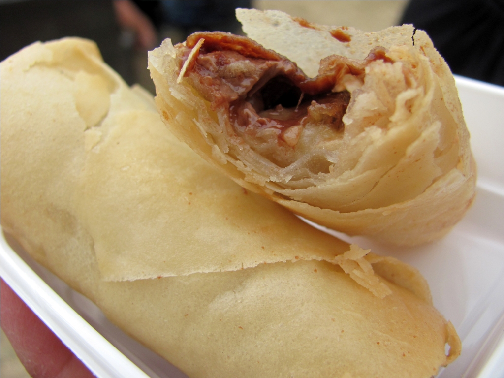 Then we hit the Choco Banana spring rolls from Chi’Zen. I was thinking, chocolate and banana fried in a spring roll? Could it be any good? I liked it. It’s definitely a different thing to have, but the gooey chocolate went well with the fried outer pastry. A thumbs-up from me.