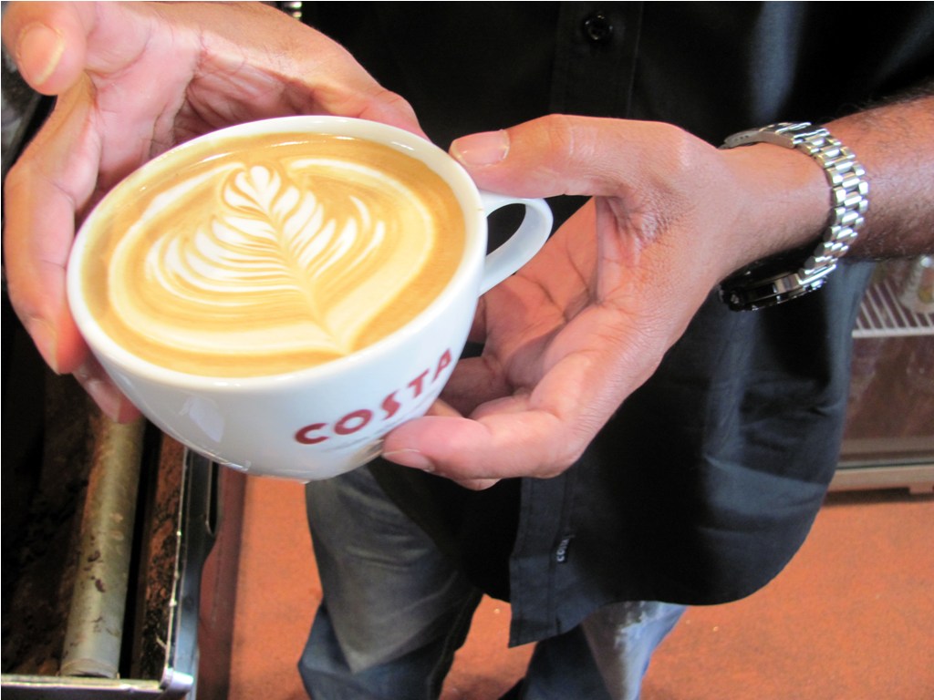 He candidly said, “Anyone can make a good cup of coffee but only the guy who has passion will make it all the time and well.” He proudly tells me that Costa is the only coffee chain, not only to launch the flat white, but also uses a Cortissimo (a shorter coffee extraction method) to build the flat white. I’m also told that it took 8 months of training, with around 220 people in the Costa chain trained before launching the drink.