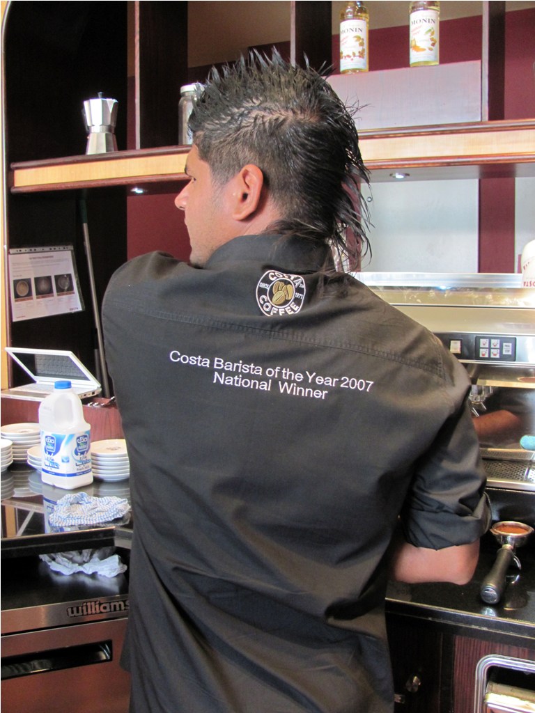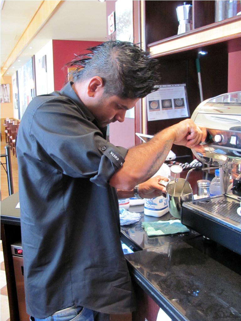 Back to Dubai. I toddled off to the Costa outlet at the Dubai Marina Promenade. My trainer for the day was Gihan Weerasinghe, who I was told, won the first Costa International Barista Competition in 2007. So one of the best baristas Costa had. No pressure.