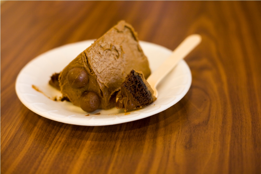 Yes. That’s me. At BakeFest, scarfing down Nick’s (that’s @theregos to you dahlinks!) Godiva Chocolate Cake. Mmmm, so so so good. Mmmmmm. So good in fact, that I have a whole gallery dedicated to said cake. While my next statement might possibly land me a lot of hate mail, here it is: I was the first person to get a hold of the first slice of the Godiva Chocolate Cake, which many people did not get because it got sold out. Burn baby burn.