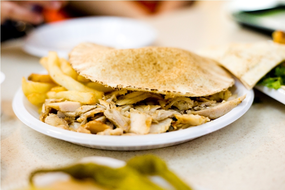 Shish taouk’s turn. Cubes of chicken marinated and grilled and just tasting of pure juicy awesomeness. Hummus and/or toom and you’re set.