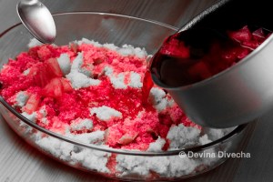 - Cut up the fruits and add to the jelly mixture
