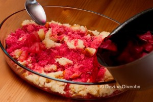 - Crumble cake and arrange it in a dish