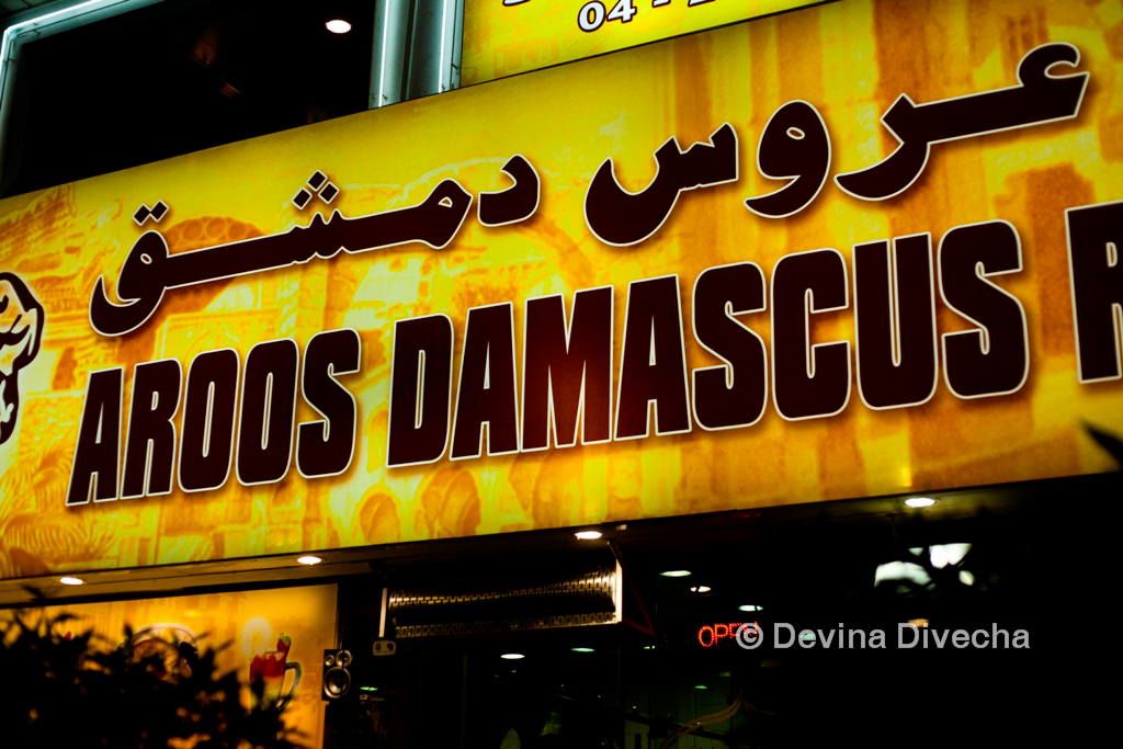 It’s to Farah’s credit, and her love for falafils, that she agreed with me. Just down the road…Aroos Damascus. Again I notice I did not take note of the price, but Farah reckons in her post-falafil haze it might have been Dhs 1/- per piece (again, don’t quote us on it). The falafils were good, again with a dip. These were big, round ones, with a hole in the middle like a mini donut.
