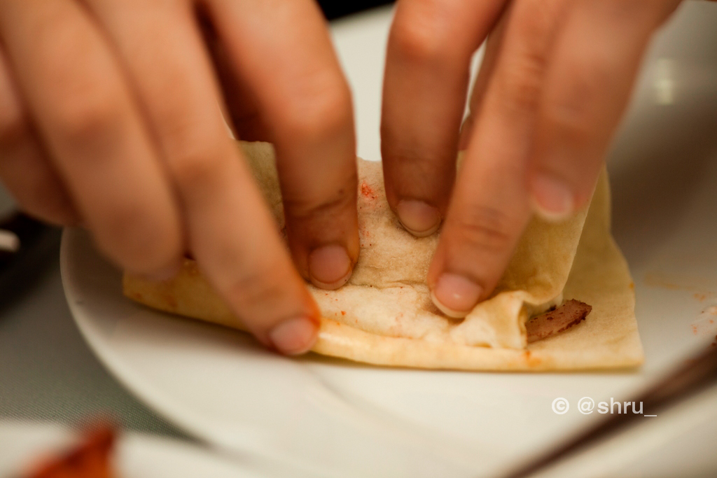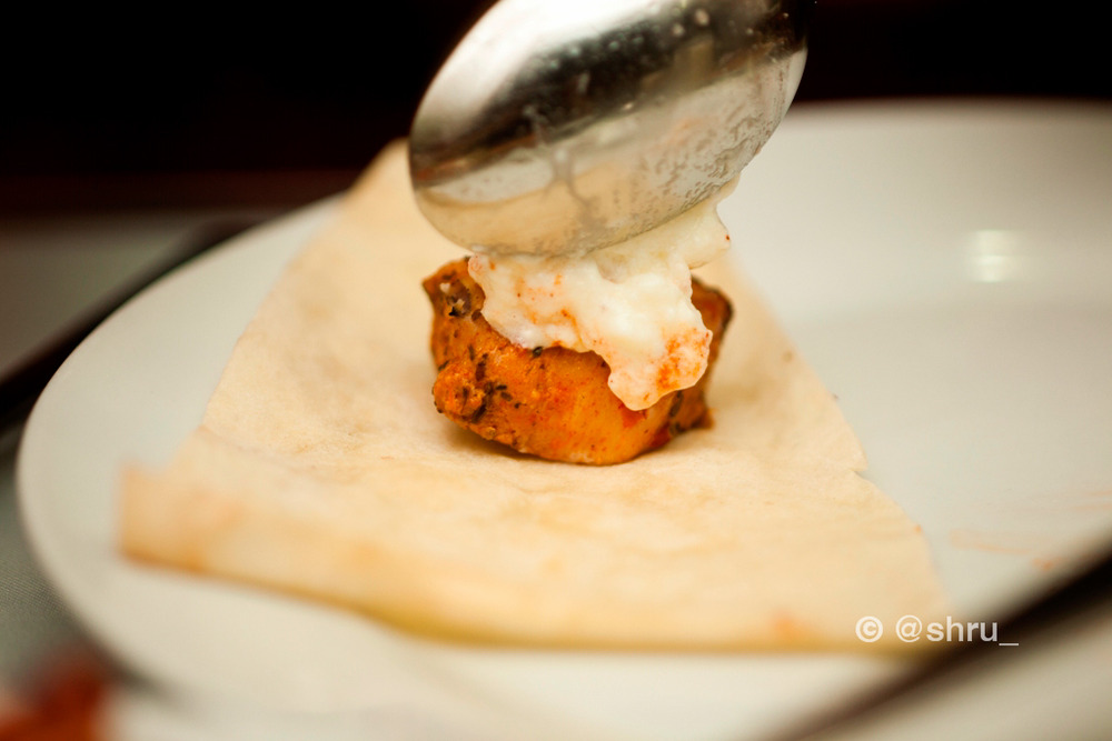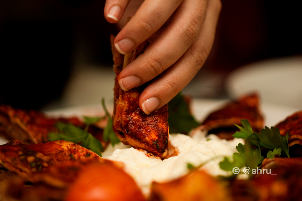 What did I think? For me and for Shruti, the meat won hands down. The chicken was good, don’t get me wrong, but personally the meat dish had more juice in it and I was thoroughly enjoying getting down and dirty with it. Dip the tomato sauce-drowning meat and khubz into the deliciously cool yoghurt, swirl it a bit, and then pop it into your mouth and I guarantee the juices will just make your taste buds tickle and heave a sigh of relief.