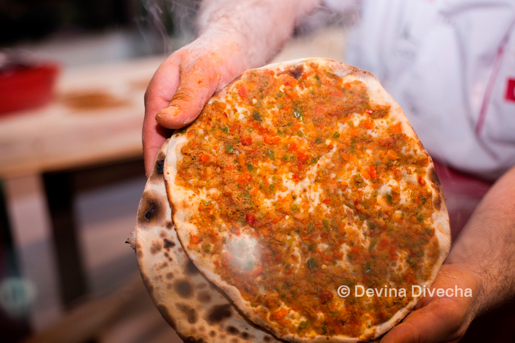 This is something I saw on Nausheen’s list at Dubai Bites (link below), and went absolutely bonkers (in a good way) when I found out it was the Turkish version of Lahme Bajine (a large flatbread with cured meat and tomatoes on top). Now, I have a long history with this most awesome dish, which I shall now tell you, whether you want to know or not. As a child, my grandfather who was a foodie in his own right, would sometimes go to Al Reef Lebanese Bakery in Karama, buy a nice, hot batch of Lahme Bajine and I’d eat my way through the lot. Since then I’ve a deep sense of appreciation of the warm, comforting smell of the bread, the aroma of the meat mingled with the soft, chopped tomaroes…and the happiness one gets out of it. *snaps fingers* Okay, come back to the present. The Lamacun was decent, spicier than I normally find lahme bajine (distinction here on the fact that the lamacun is not spicy; merely spicier than how the dish normally is).