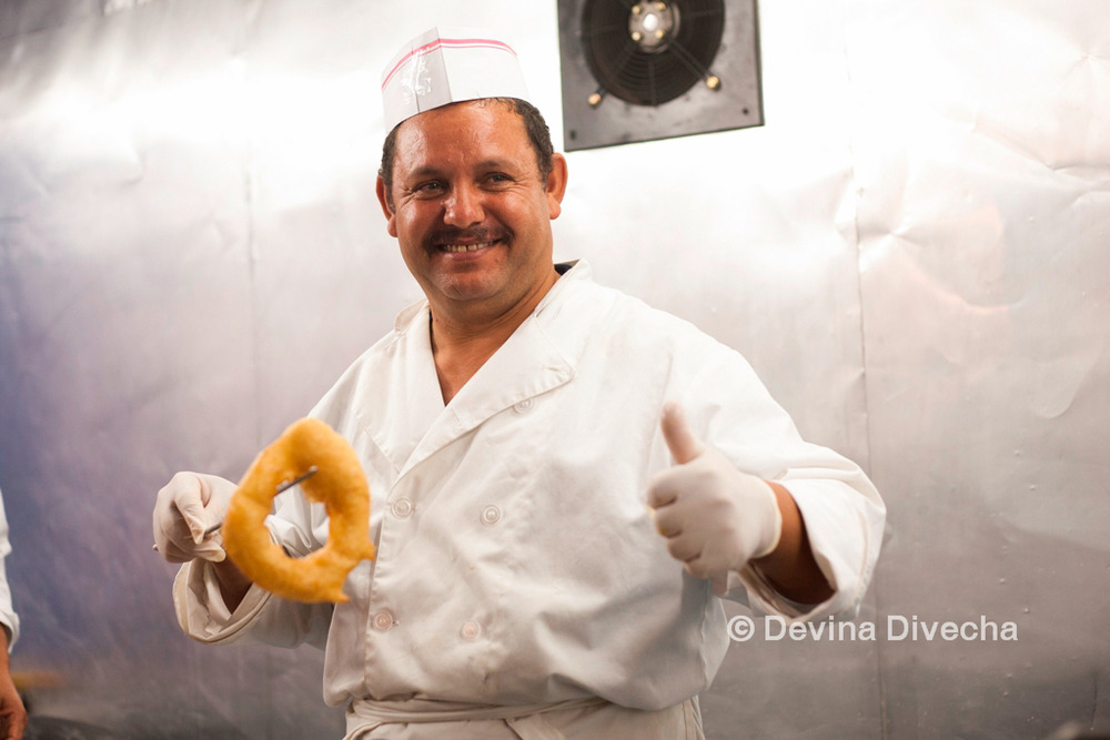 I can’t recall why we moved into the Tunisian pavilion, so whoever’s idea it was: own up so I can give you all my love (and an awesome cup of chai). All the way down the end of the pavilion was a food stand, with jolly men frying things away. Didi said this was the Tunisian donut, and of course we had to try it! The guy behind the counter was absolutely amazing; he posed for the pics, fried the donuts with flair, adding as much pizzazz as he could, to spice it up for the crazy people clicking away. LOVE IT. I love it so much this is the only food item that gets two photos in the post.