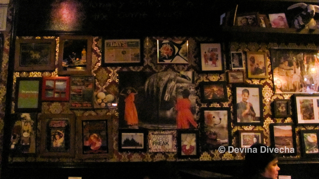 Three people – one chef and two staff – greet us with folded hands, like “namaste”, and I’m pretty sure they said “Sawadika”, after which they ushered us in. I was confronted with a lot of black, walls plastered with frames, photographs on one side, and t-shirts with images and words related to the Thai beer Singha all over them, hung on another.