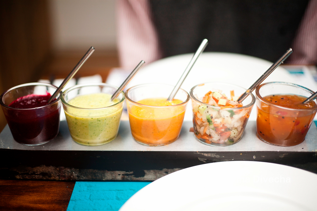 I must make a note here, a specific note…of their chutneys and dips. You must order this when you go there (and quite affordable at £1) A rack of five shotglasses filled to the brim with mouth-watering chutneys stare at you. “DIP INTO US!” they scream. Dip, I did. The beetroot one was magnificent I must say.