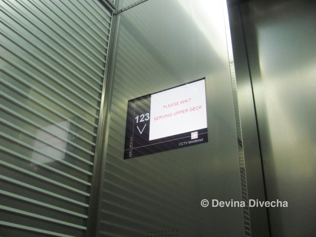 First bit of advice: don’t just show up there. Make a booking in advance so they have you on their list. Pass through barriers to the lift that zooms up 123 floors, ears popping, its occupants (including me) making exaggerated yawning faces or holding noses to pop ears.